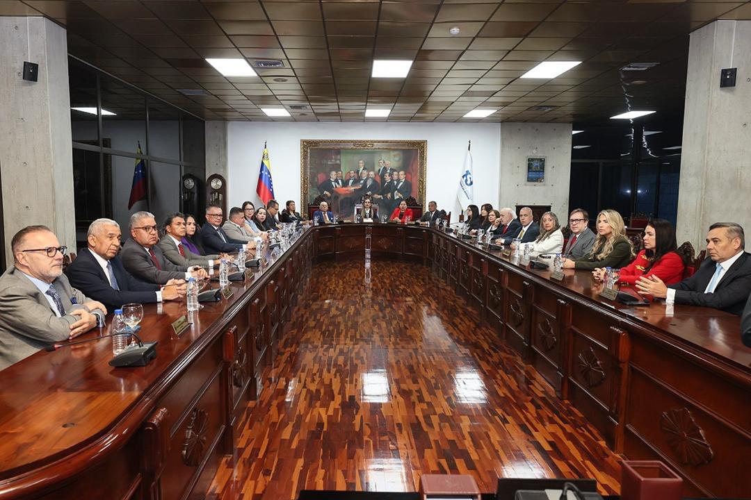Las Magistradas y Magistrados que integran la Junta Directiva y las diferentes Salas del Tribunal Supremo de Justicia (TSJ) recibieron a una comisión de diputados y diputadas a la Asamblea Nacional (AN), quienes notificaron formalmente el inicio de sesiones para el período legislativo 2026-2027, encuentro en el que se ratificó el compromiso de continuar el trabajo articulado entre ambos Poderes del Estado con el objeto de garantizar la institucionalidad democrática, la soberanía y la paz en el país.